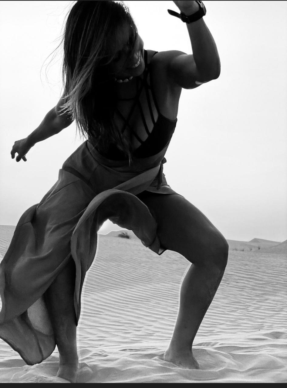 Despertamos articulaciones y energía en playa. Un flow instintivo, femenino y libre para trabajar fuerza sin exigencia.